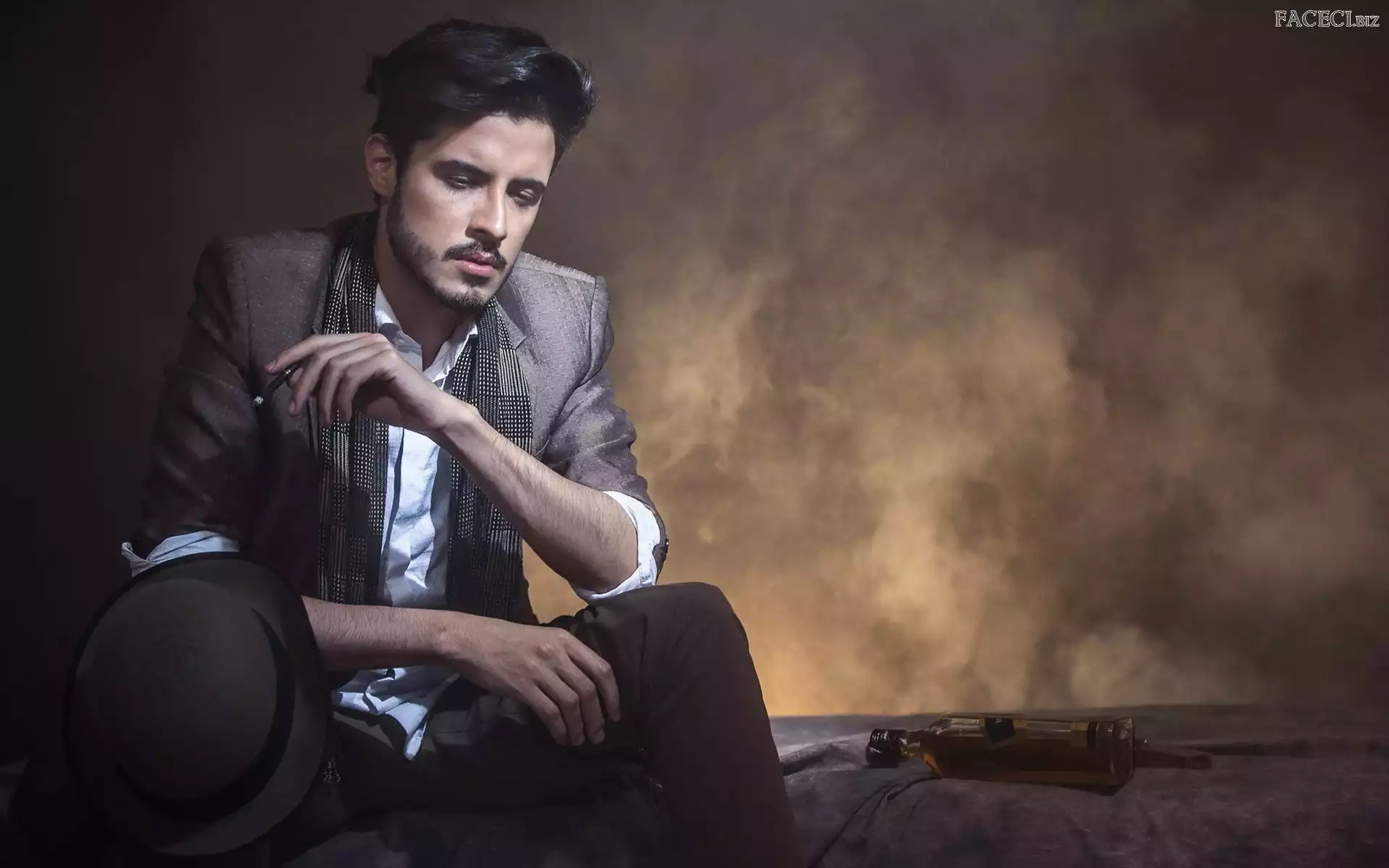 Papieros, Zamyślony, Mężczyzna - faceci.biz